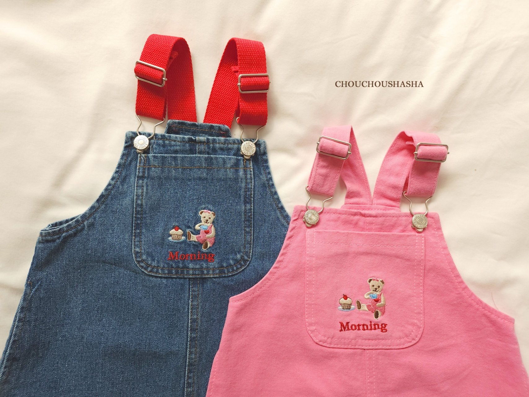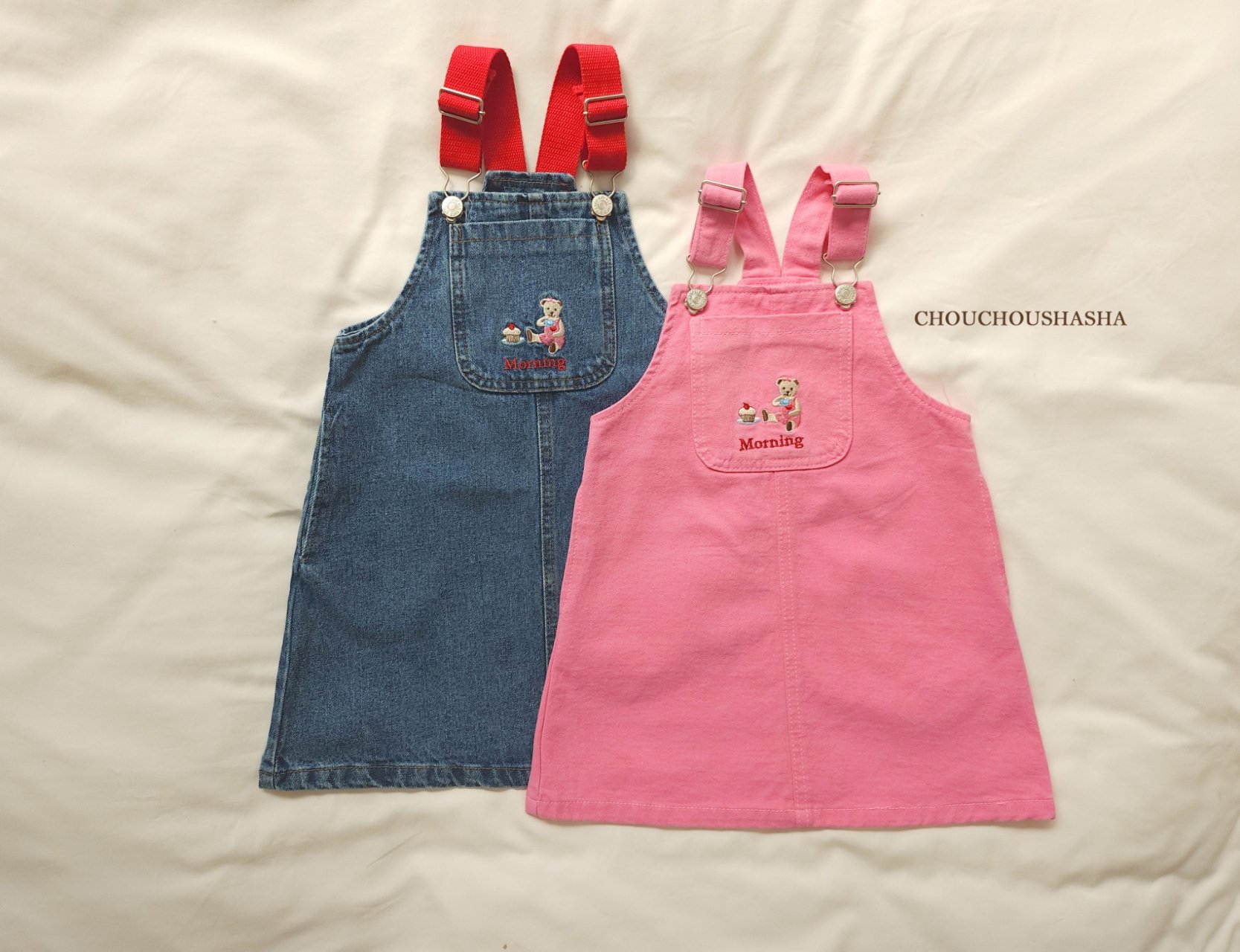 공주님들의 원픽 핑크컬러와 오버롤에 빠질수 없는 데님 두 컬러로