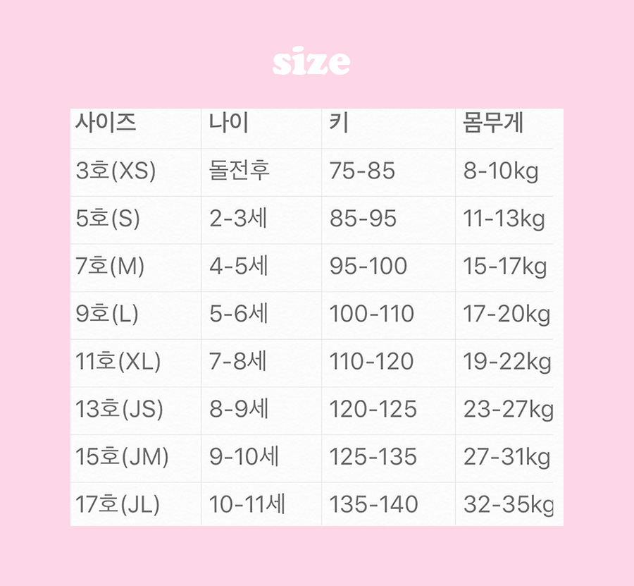 아이의 체형과 선호하시는 핏에 따라 사이즈 가감해주세요