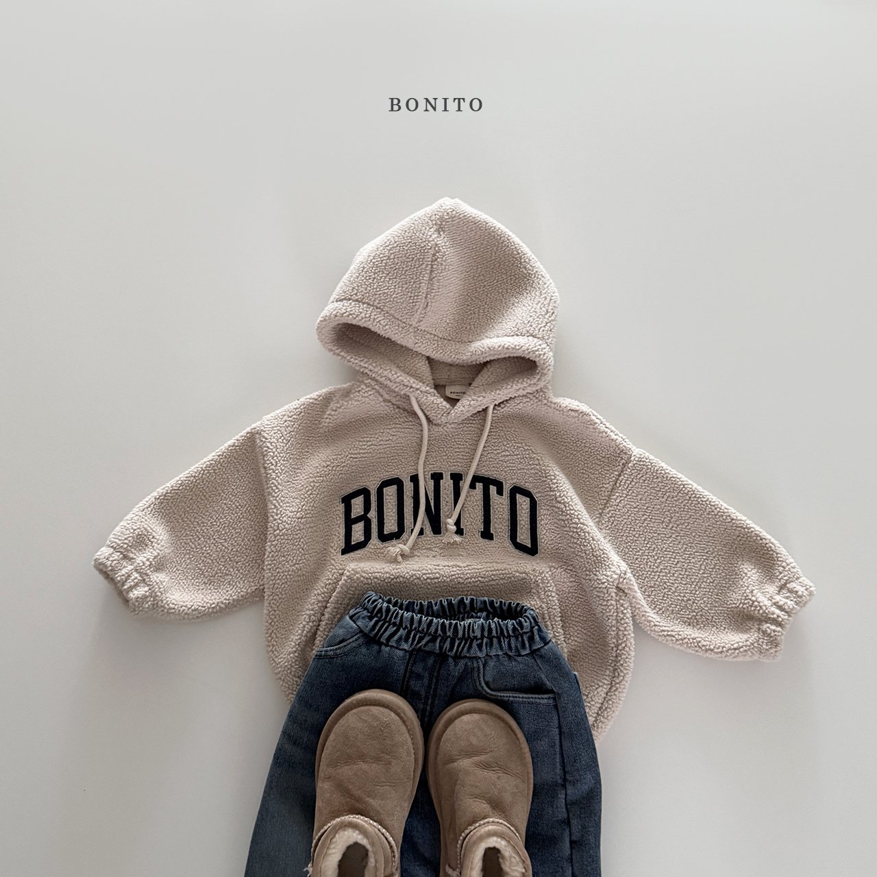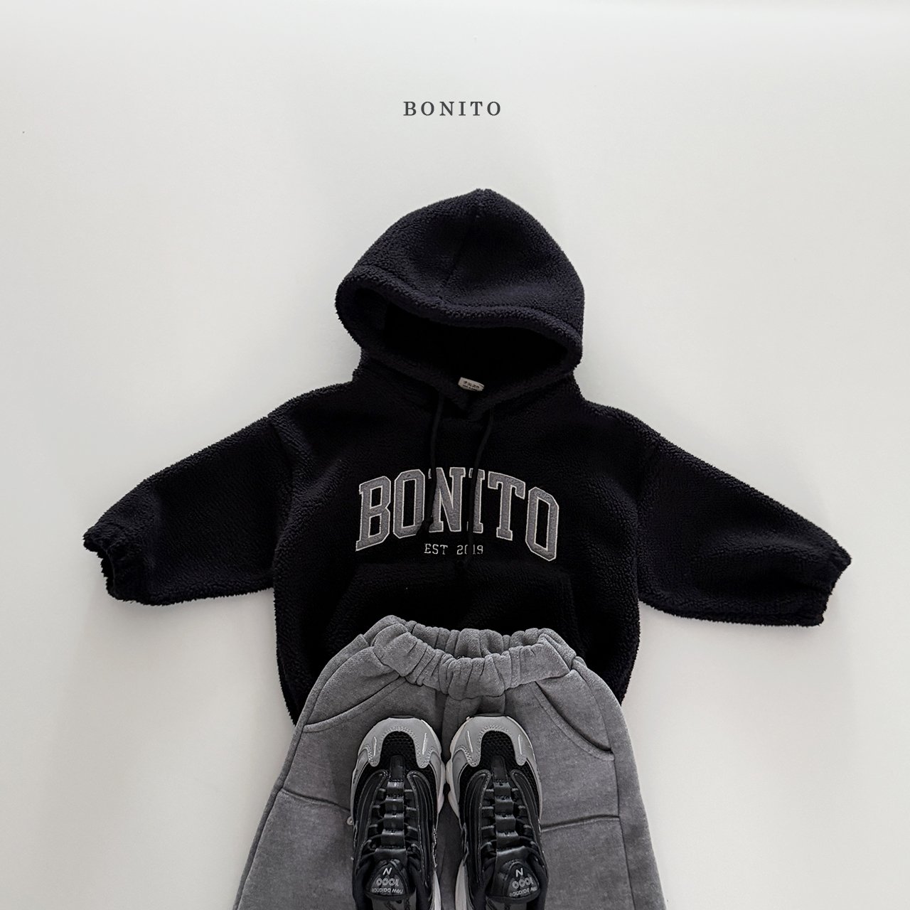 전면의 BONITO 아치형 레터링 자수 포인트가