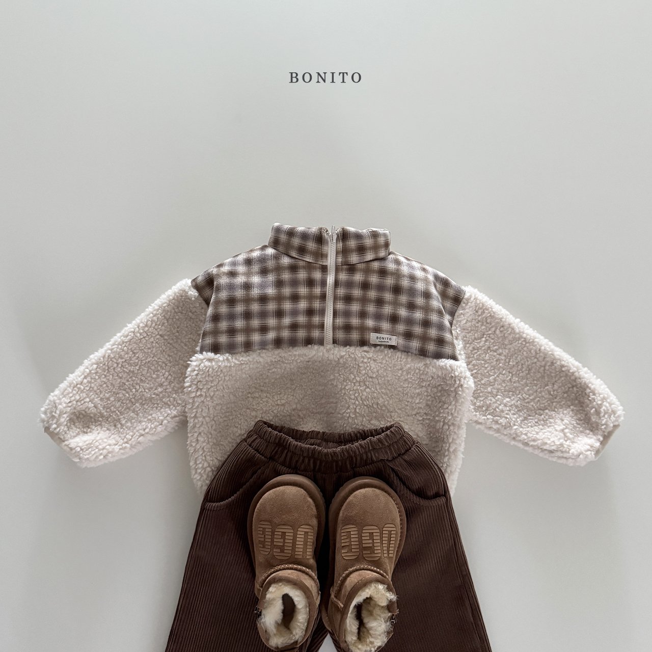 하단과 소매에는 포근한 덤블 퍼 원단을 매치해