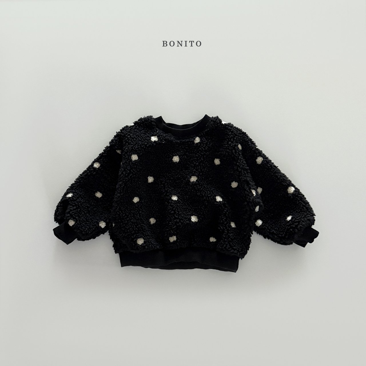 포근한 덤블 원단 위에 귀여운 도트 패턴이 더해진 맨투맨이에요