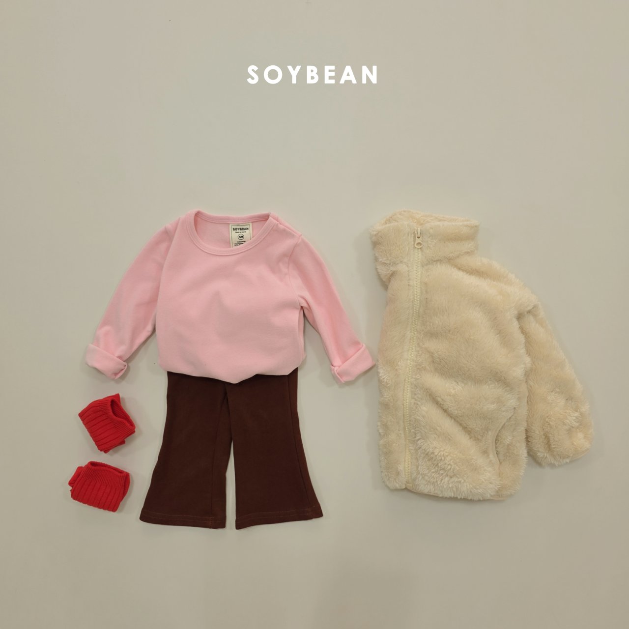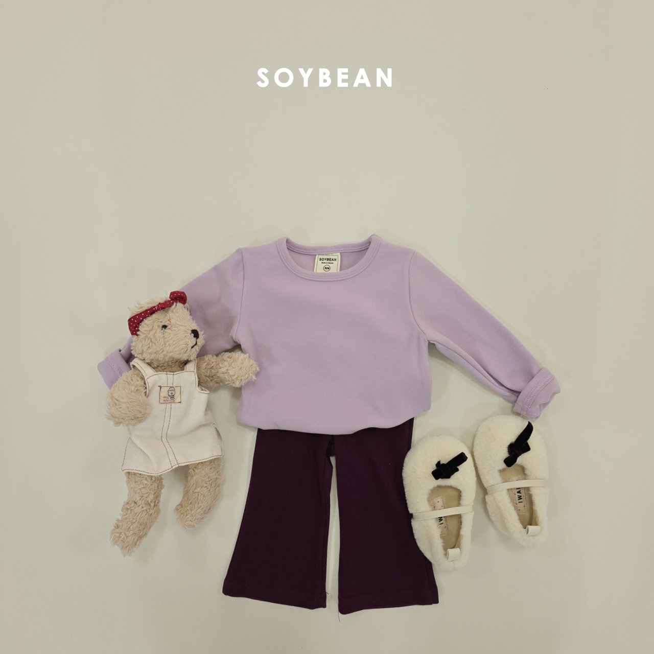 하의는 8부 기장 플레어 팬츠로 러블리한 핏감의 세트로