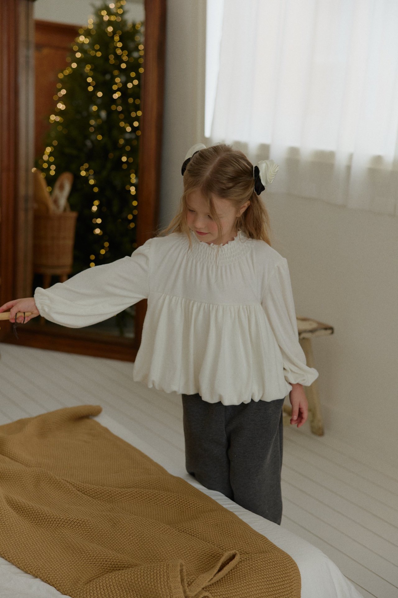 밑단의 벌룬 디테일로 유니크하면서 네크라인과 소매끝까지