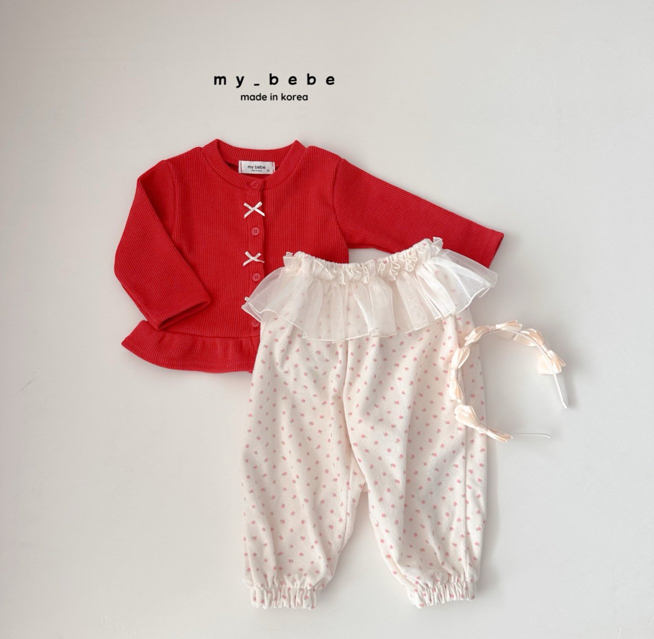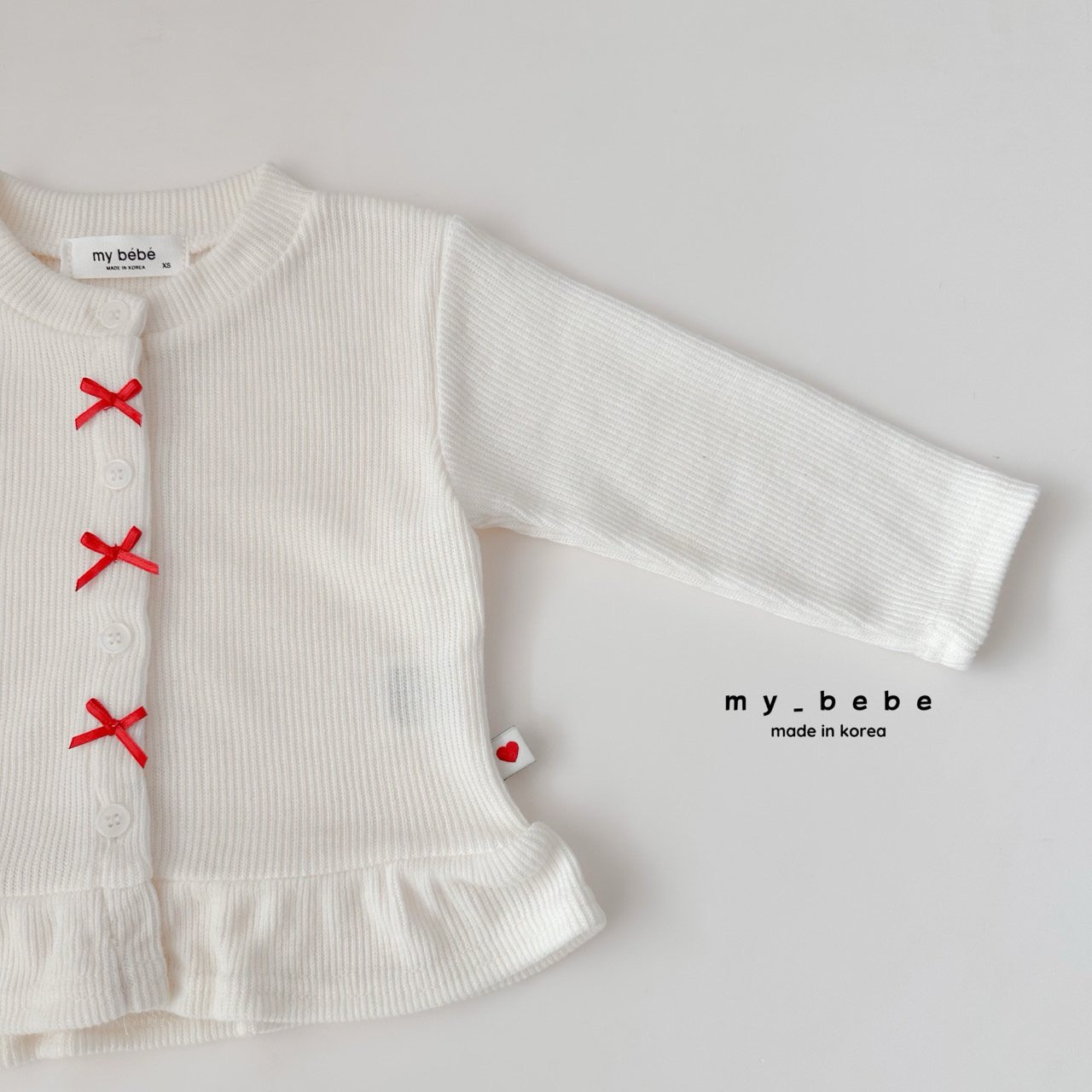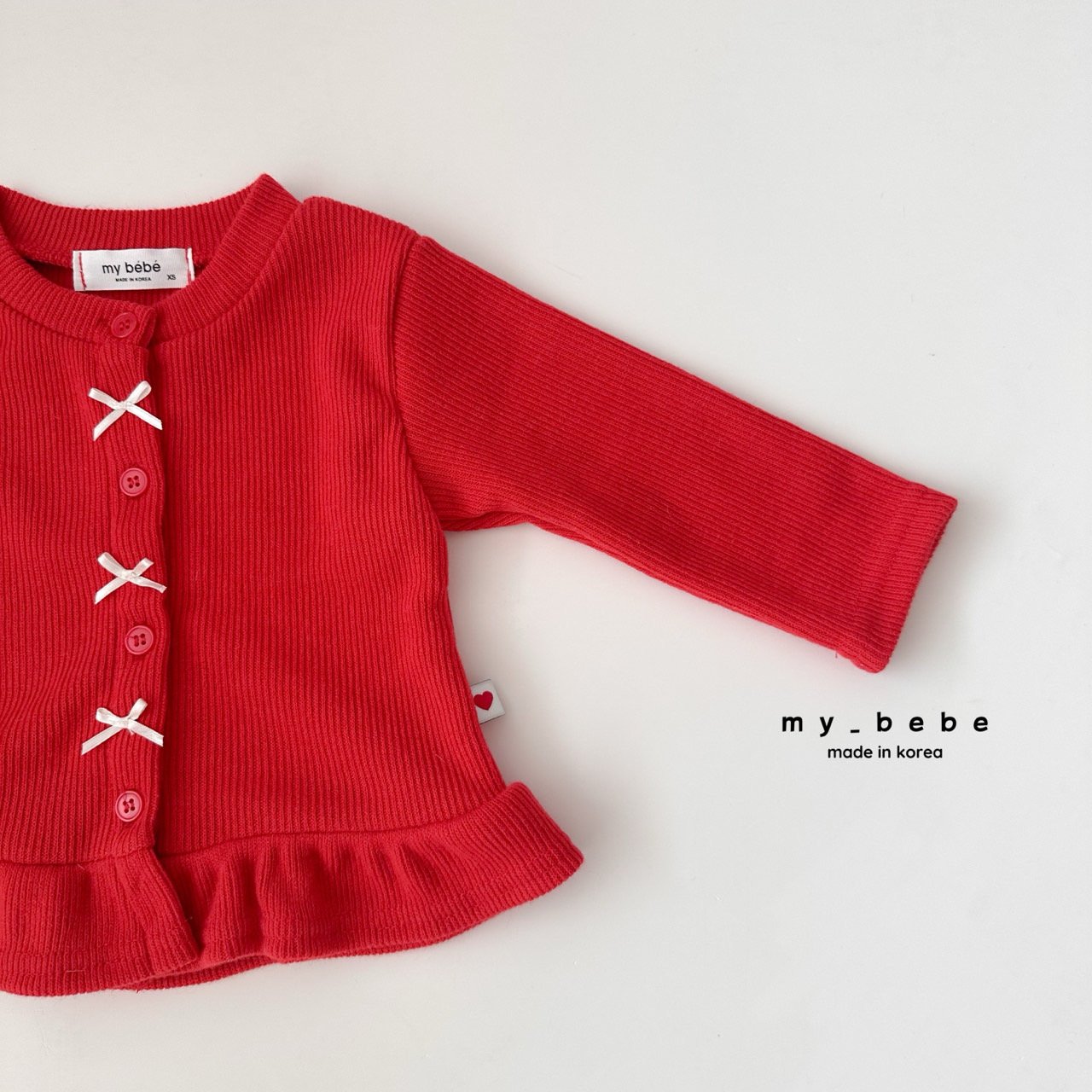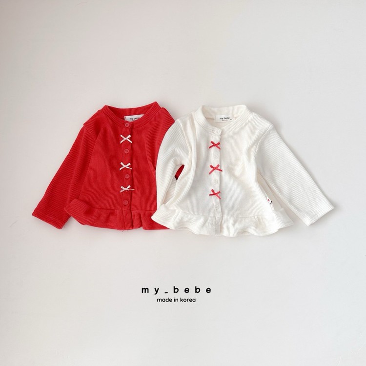 리본이 포인트로 귀여운 프릴가디건이에요