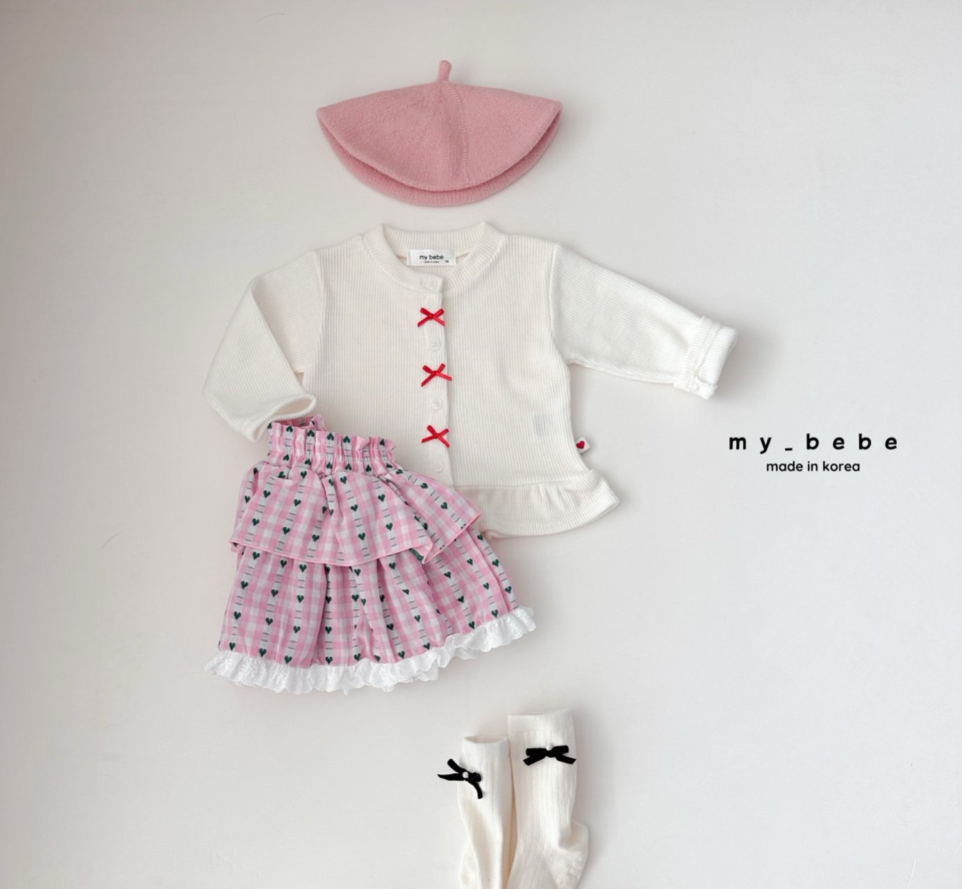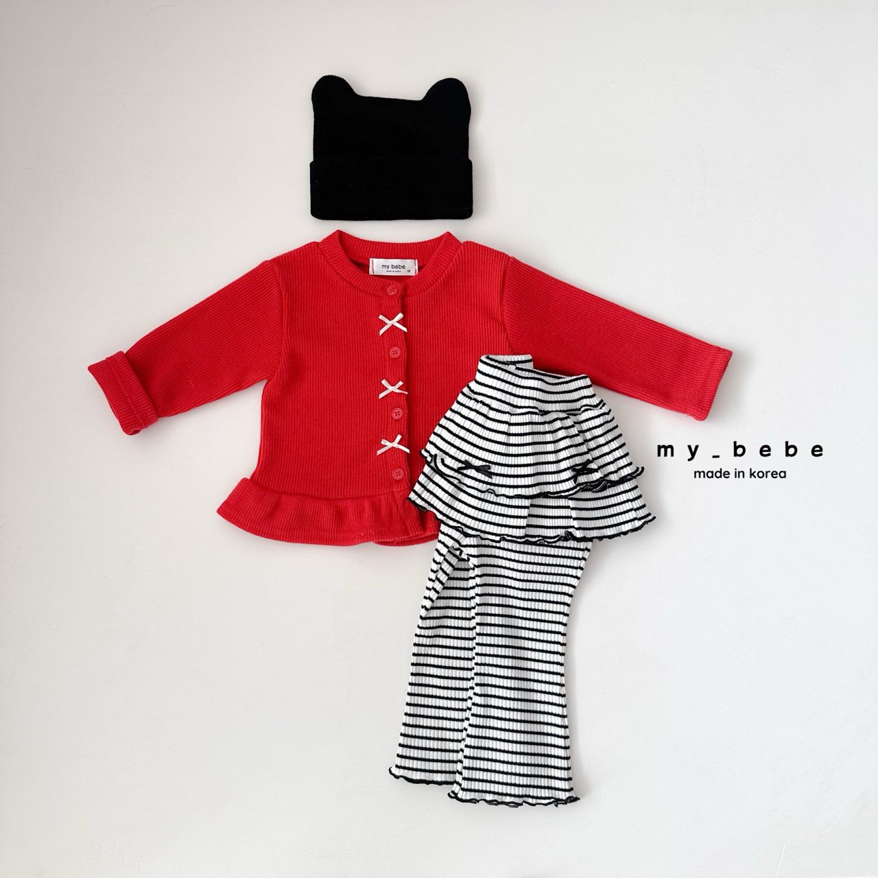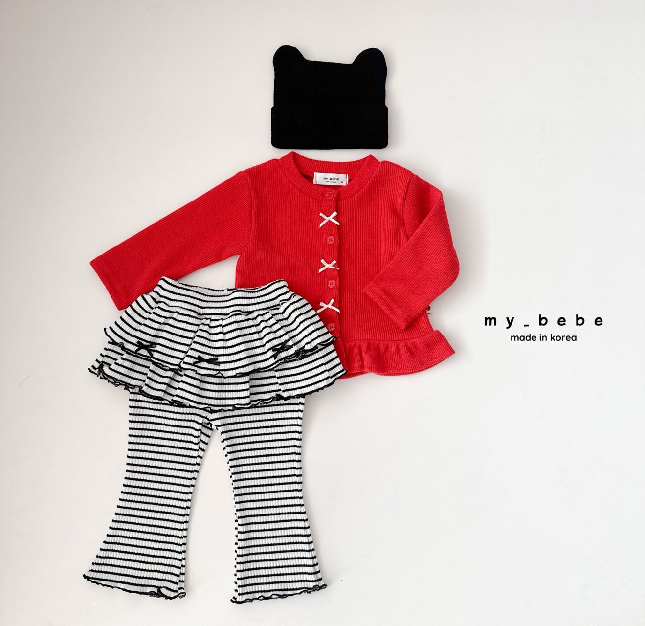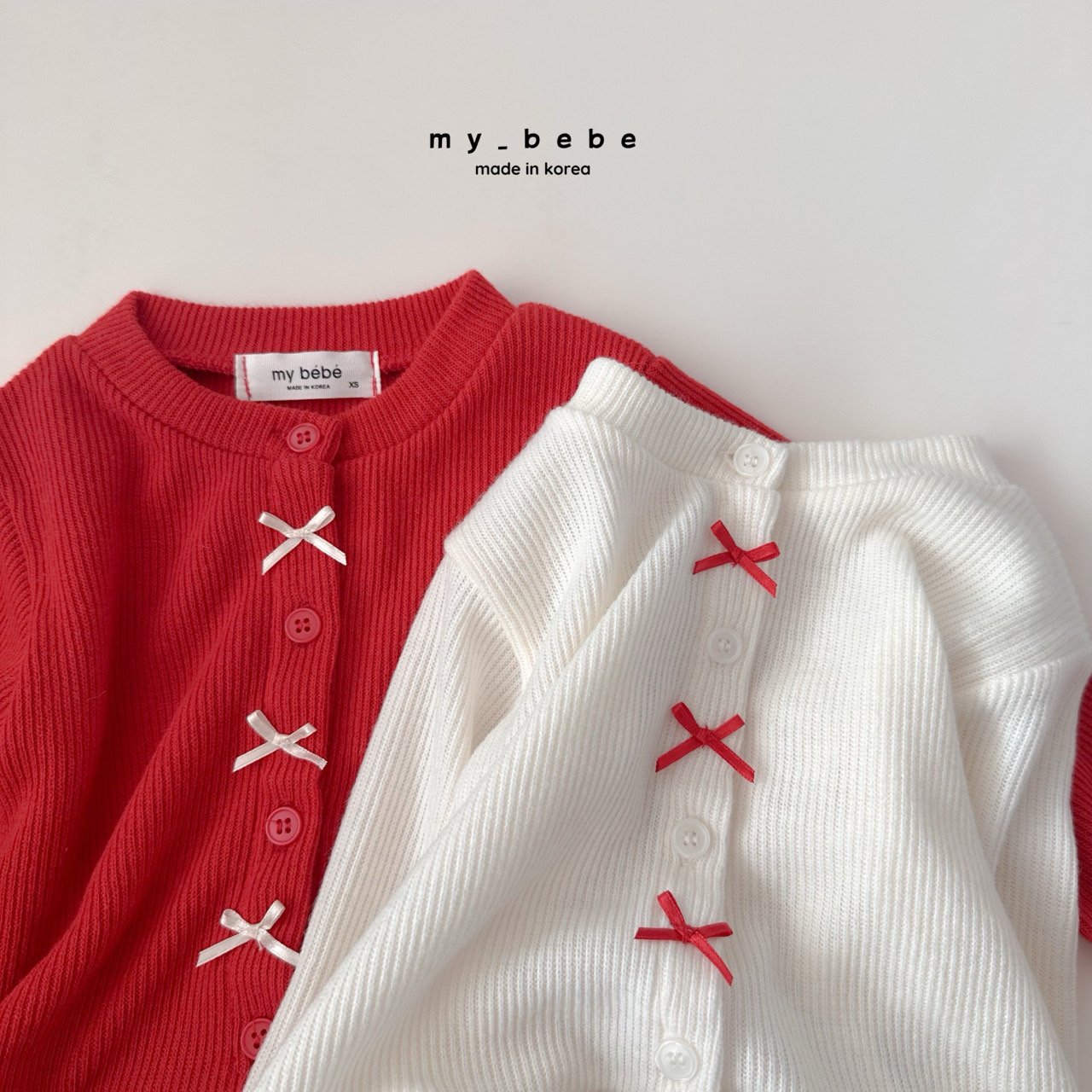 리본이 포인트로 귀여운 프릴가디건이에요